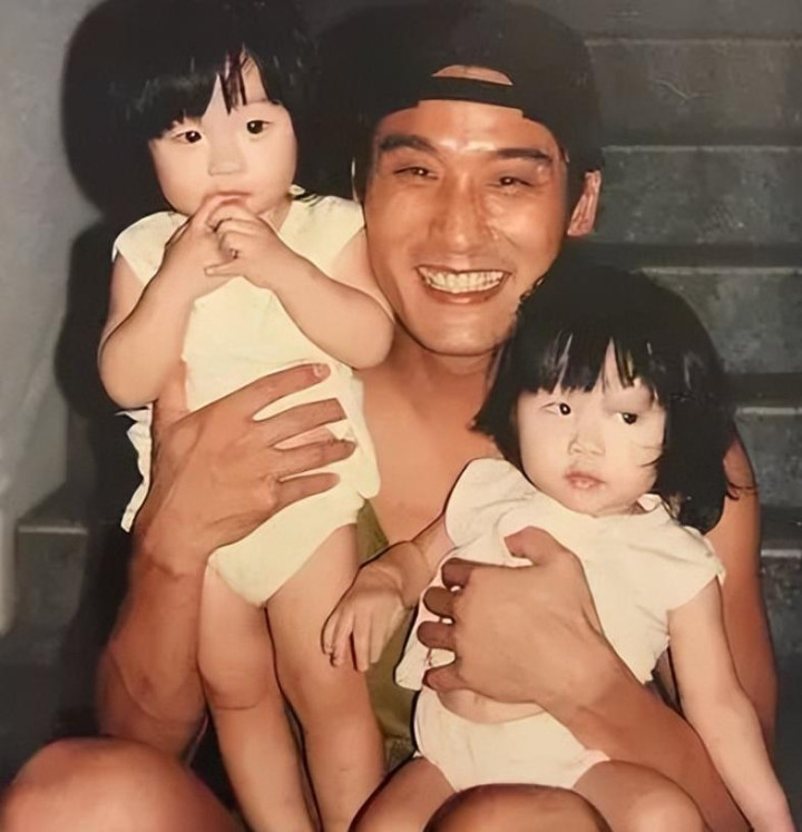 婚后,梁家辉拼了命接戏赚钱,一年拍十几部,还要抽空陪老婆和双胞胎女儿。