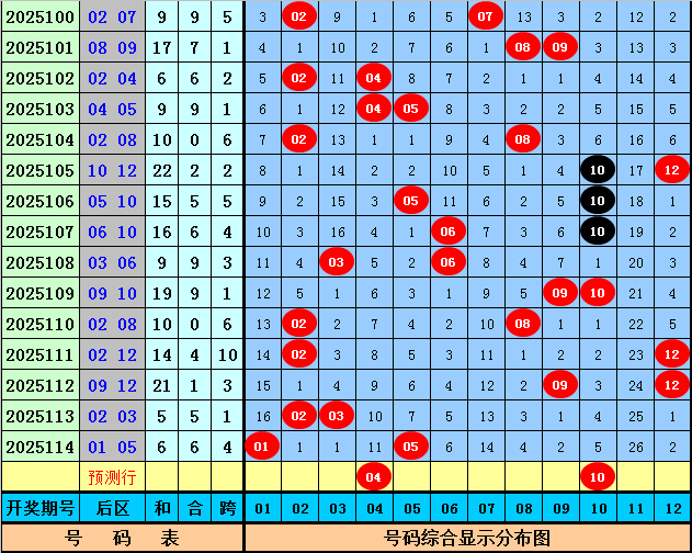 马哥第2025115期大乐透后区五码参考:02 04 08 09 10