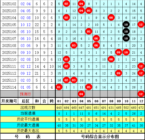 第2025115期5+2推荐:04 07 10 16 23 + 04 12